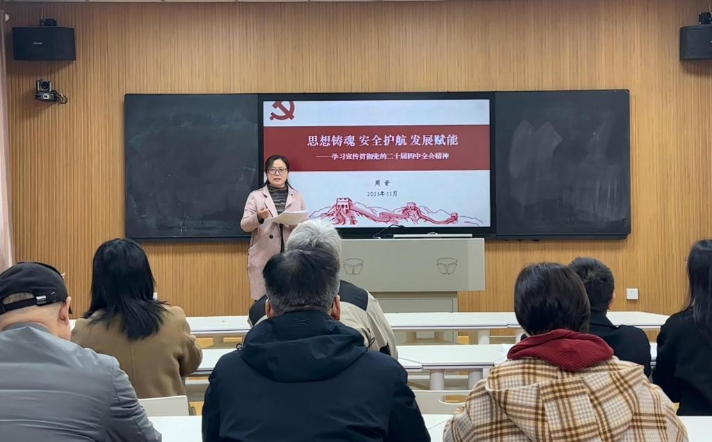 会后,周晋以《思想铸魂 安全护航 发展赋能——以党的二十届四中全会精神引领继续教育高质量发展》为主题,为全体党员讲授党课。